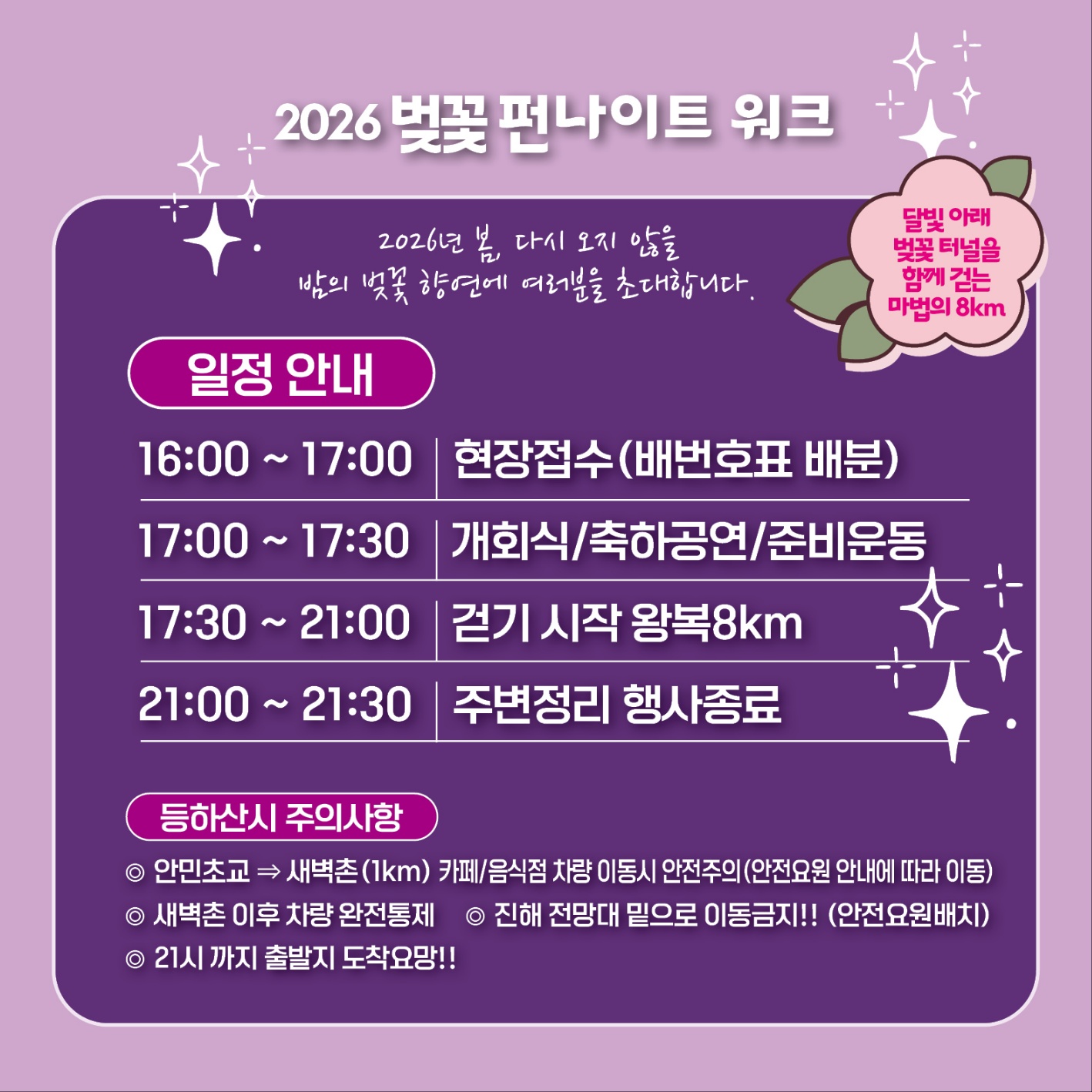 달빛 아래 벚꽃 터널을 함께 걷는 마법의 8Km